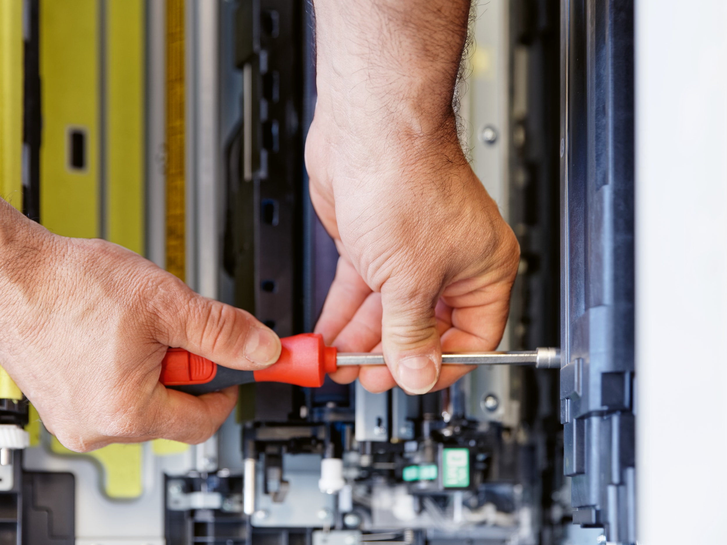 Probleme sind da, um behoben zu werden. Unsere flinken Servicetechniker sind garantiert in kürzester Zeit vor Ort, wenn es sie braucht. Mit Erfahrung und analytischen Fähigkeiten finden sie meist schnell die Ursache der Fehlfunktion und beheben sie. Auch reparieren sie Geräteteile, wechseln Trommeleinheiten aus, entfernen Tonerrückstände oder reinigen verschmutzte Komponenten.